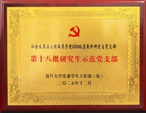创建期间,支部先后获评示范党支部创建中期优秀、党建创新资助计划第Ⅰ档立项、北苑学生生活园区党员志愿服务岗优秀结项、研究生社会实践优秀项目等多项荣誉,支部所在班集体荣获复旦大学“优秀集体”“优秀团支部”称号。建设成效显著。