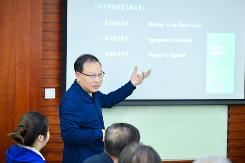 华东师范大学社会发展学院院长文军教授的演讲主题是“非人类社会现象与社会学研究的新拓展”。文教授指出,古典社会学如马克思、韦伯和涂尔干等在建立学科时,多少都带有强烈的人类中心主义特征,而当代社会学正面临认同危机,亟需通过吸纳新的研究内容来拓展知识体系。报告强调,随着人工智能等技术驱动的“非人类社会现象”的快速发展,社会学研究对象已不再局限于人类,并开始面临方法论和观念框架的双重挑战。未来,社会学应着力研究人工智能带来的私人数据与隐私保护、技术与社会互动等诸多议题,同时需要探索适应非人类社会现象研究的新知识和新方法,修正传统实证主义社会学的想象力,以超越传统框架来迎接这一新兴议题的学术挑战。