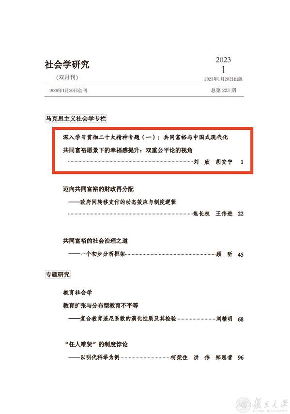 在“社会转型与社会学理论”领域,学院以理论创新为导向,形成了注重制度分析的鲜明特色,在社会学理论与方法、社会结构、分层与流动、社区研究等多个方向成果丰硕。依托上海市社会科学“社会结构转型与社会学理论创新”基地,刘欣教授团队发表系列论文,揭示了社会结构转型的层次与维度,为国家凝聚精英人才、推进中国式现代化提供了重要政策启示。刘欣教授与胡安宁教授的合作研究提出收入分配公平感的新制度主义解释和双重公平论,为实现共同富裕提供了学理支撑。胡安宁教授将现代社会科学方法引入文化传承研究,为中华优秀传统文化的创造性转化和创新性发展提供社会学研究的新思路,相关成果多次荣获教育部、上海市优秀成果奖。