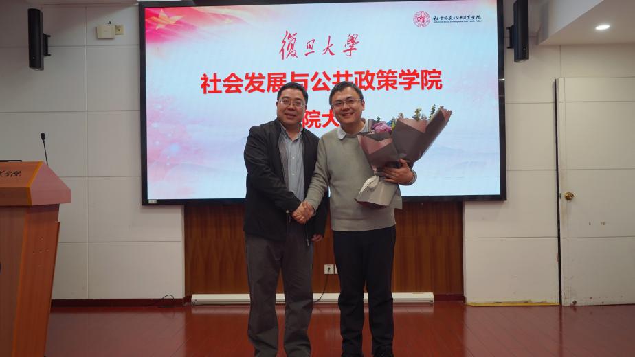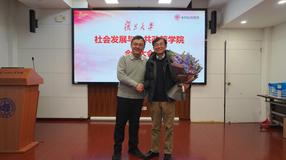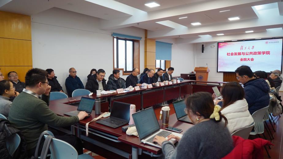 2026年1月20日下午,复旦大学社会发展与公共政策学院干部调整宣布会议在邯郸校区文科楼919会议室召开。复旦大学党委常委、副校长陈志敏,党委常委、组织部部长艾竹出席会议。会议由党委组织部副部长、党校办公室主任童一明主持。学院全体教职工及高等教育研究所党员教师参加了会议。